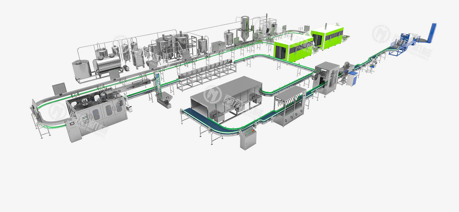 該系列設備用于生產非碳酸飲料,例如礦泉水和純凈水等。洗滌,灌裝和封蓋一體成型。